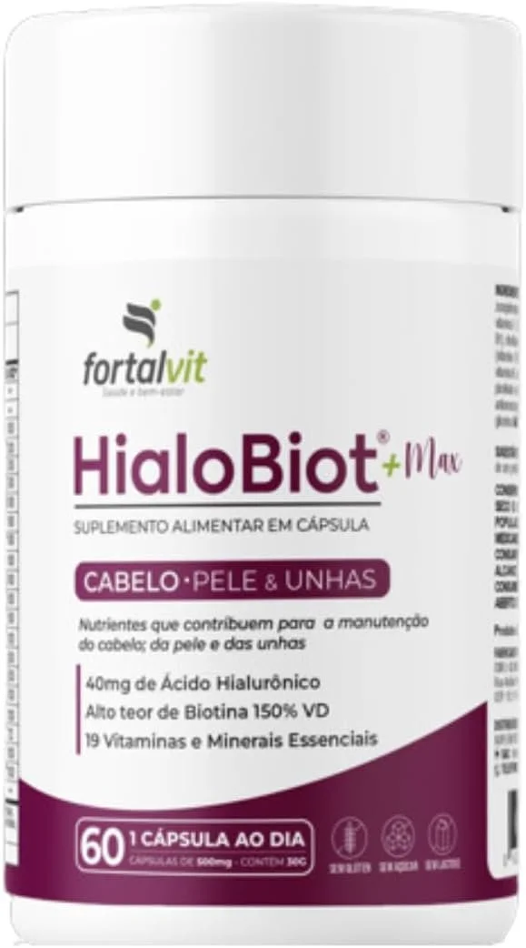 HIALOBIOT – Cabelo, Pele e Unhas – Ácido Hialurônico, Biotina Alto Teor, Longa Duração 2 Meses de Uso, 19 Vitaminas e Minerais Essenciais, 60 Cápsulas, HialoBiot, Fortalvit