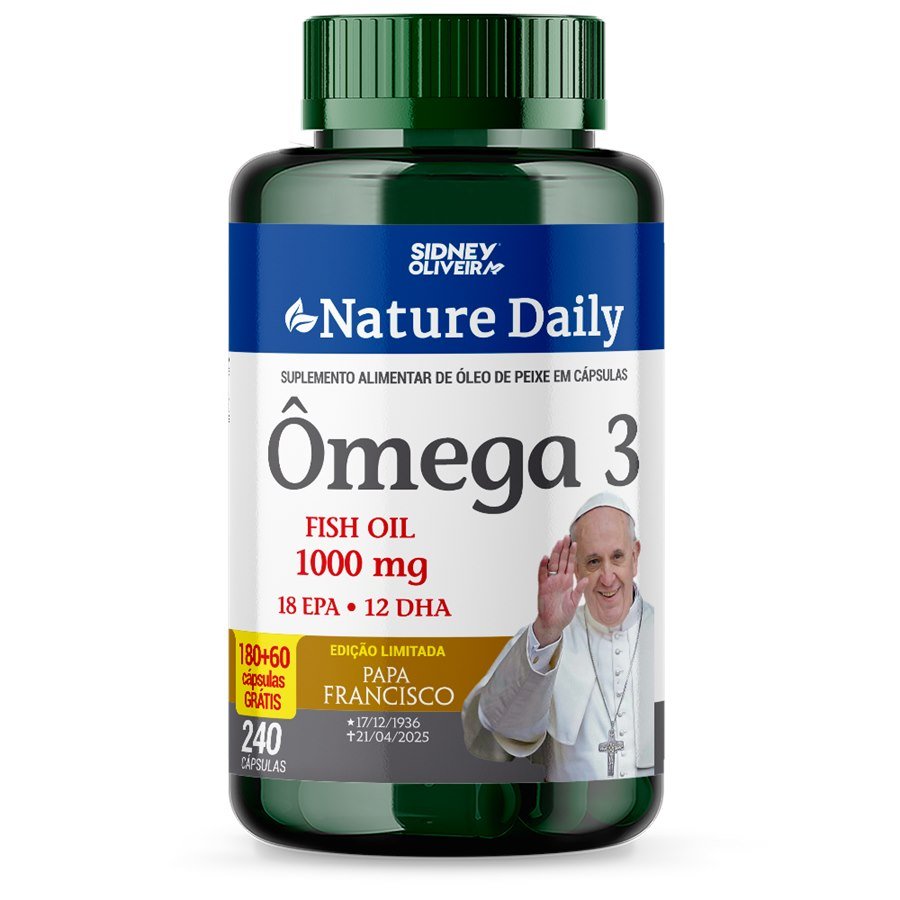 Ômega 3 1000 mg Nature Daily 240 Cápsulas Sidney Oliveira Edição Limitada Papa Francisco
